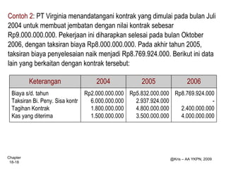 2 Penyimpangan dari Dasar Penjualan. Dalam kasus tersebut jumlah piutang dagang yang jangka penagihannya lebih dari 1 tahun harus dicatat dalam catatan atas laporan keuangan pada periode selanjutnya. Adapun berikut ini pemahaman untuk Anda dalam contoh soal pengakuan pendapatan dalam metode persentase penyelesaian kontrak kontruksi sebagai pengukuran.